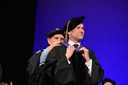 Mutchnick said he was especially proud of receive his Doctor of Humane Letters, along with Allen, Lang and Dove, because now his mother can tell her beauty parlor friends, “My son is a nice Jewish doctor.”