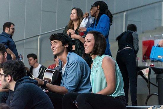 Fourteen Emerson Los Angeles students took to ELA’s Grand Staircase to perform for their peers on Sunday, April 12, as part of a student performance night. The event was dubbed “Stoop Kids” and featured a variety of performances, including singing, dramatic monologues, spoken word, and a ukulele performance of the song “Uptown Funk.”