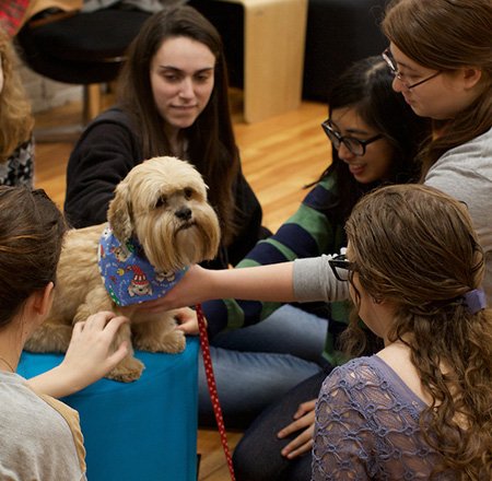First held at the end of the Fall 2014 semester in the Iwasaki Library, Cirque de De-Stress was considered a successful event that increased interactions between students and staff. The unconditional acceptance expressed by the therapy animals helped calm people and unite them in a shared interest activity.