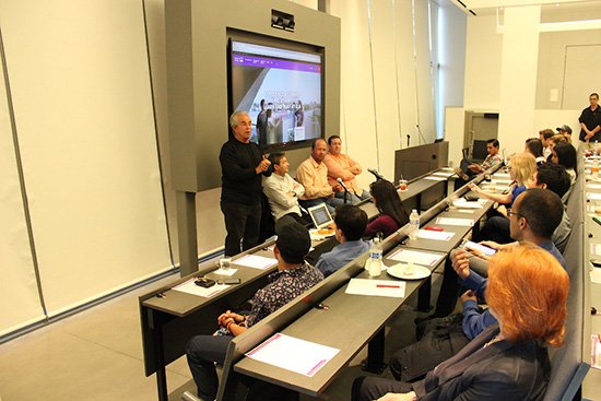 Michael Solomon ’60 led a panel discussion at Emerson Los Angeles about content distribution with Jules Haimovitz, Nicholas Chartier, and Jonathan Cody. (Photo by Daryl Paranada)