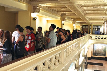 Students are met with long lines outside the Little Building Dining Hall at the start of the May 4 Late Night Buffet. (Photo by Nick Eaton ’17)