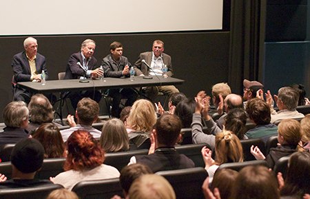 After the screening, Writing, Literature and Publishing Assistant Professor Susanne Althoff, former editor-in-chief of the Boston Globe Magazine, hosted a Q&A with current and former Boston Globe journalists and Spotlight Team members Walter Robinson, Michael Rezendes, Ben Bradlee Jr., and Matt Carroll.