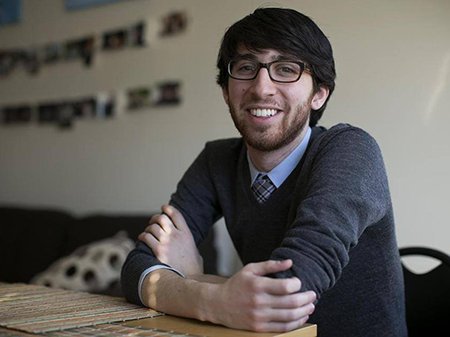 Halberstadt’s ties to Emerson are long and strong. He started out as a tour guide his first year. Today, after graduating with an undergraduate degree in Theatre Education (he has an MFA in playwriting from Boston University), he is senior assistant director of undergraduate admission, where he recruits future Emersonians in his territory (Maine, Long Island, Illinois, Michigan, and parts of Connecticut) and oversees various alumni projects back in Boston.