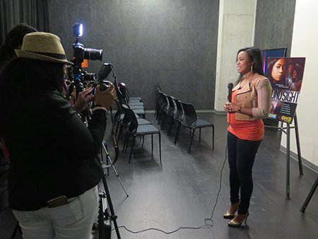 A pregnant Tatyana Ali speaks with press following the premiere of Second Sight at ELA. Photo/Daryl Paranada
