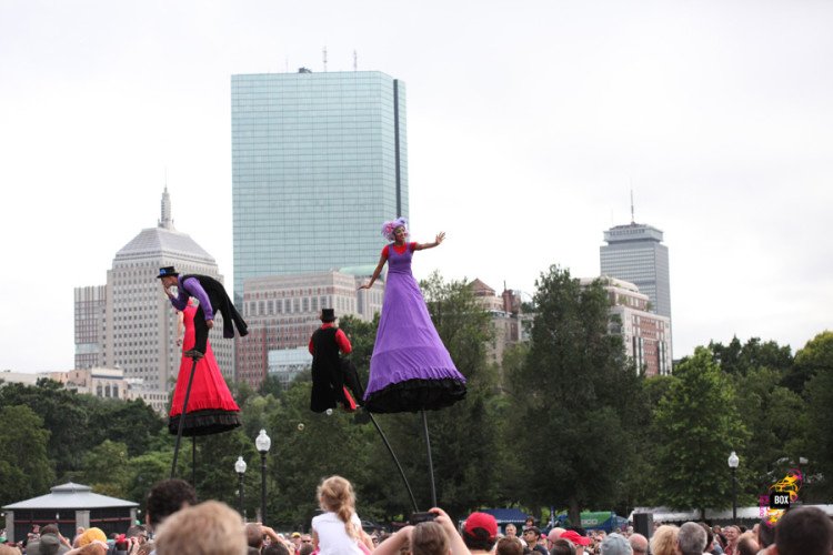 Performances start at noon on Thursday, July 14, with family-friendly shows by Alex the Jester, Jenna Lotti, Cheung Family Kung Fu, and Vanessa Trien and the Jumping Monkeys on various stages, with MFA-Boston, Knucklebones, and Evan Northrup playing On the Common.