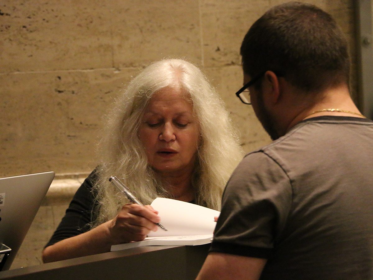 Author Amy Hempel signs a book for a fan at a reading held September 25 in the Bordy Theater. Prior to the reading, Hempel gave a Q&A for students and faculty in the Beard Room.