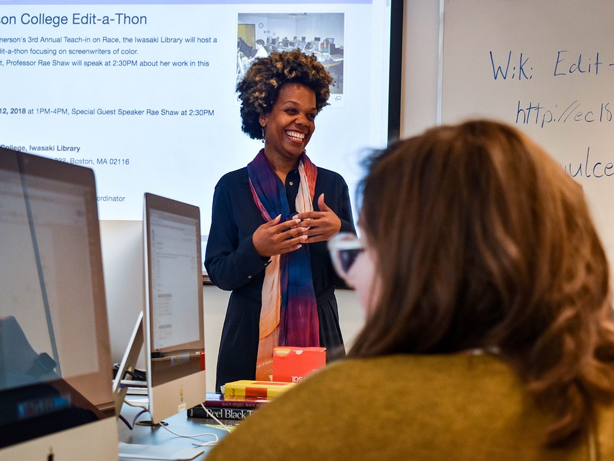 As part of Emerson’s third annual Teach-in on Race, the Iwasaki Library put a spotlight on screenwriters of color during a Wiki Edit-a-Thon, where students were given an opportunity to improve and add information about underrepresented screenwriters with the help of librarians.