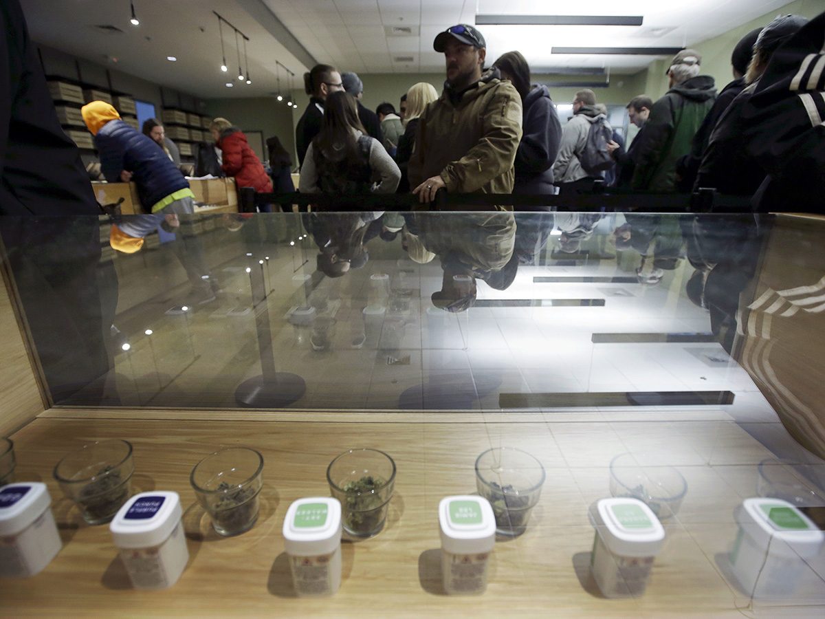 Customers wait in line to purchase recreational marijuana at the Cultivate dispensary on the first day of legal sales, Tuesday, Nov. 20, 2018, in Leicester, Massachusetts. Emerson alumnus Dan Adams ’13 is the Boston Globe‘s first dedicated cannabis reporter. (AP Photo/Steven Senne)