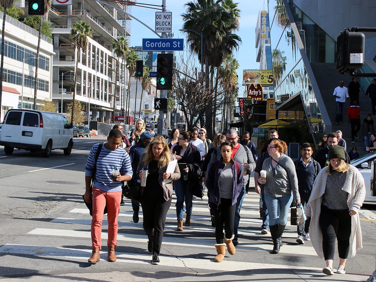Grey’s Anatomy showrunner Krista Vernoff keeps teaching students in the low-residency MFA in Writing for Film and Television program after a false fire alarm sends them out onto Sunset Boulevard. Photo/Daryl Paranada