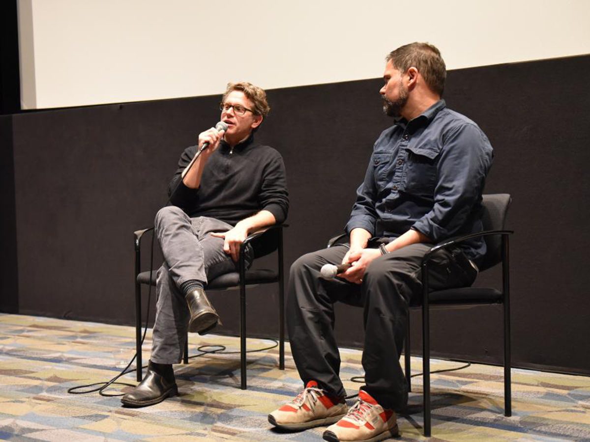 Director David Abel, a Boston Globe reporter and former adjunct faculty member in Emerson’s Journalism department, shares insight with viewers alongside the event’s moderator, Nejem Raheem, environment economist and interim chair of the Marketing Communication Department. Photo/Molly Loughman
