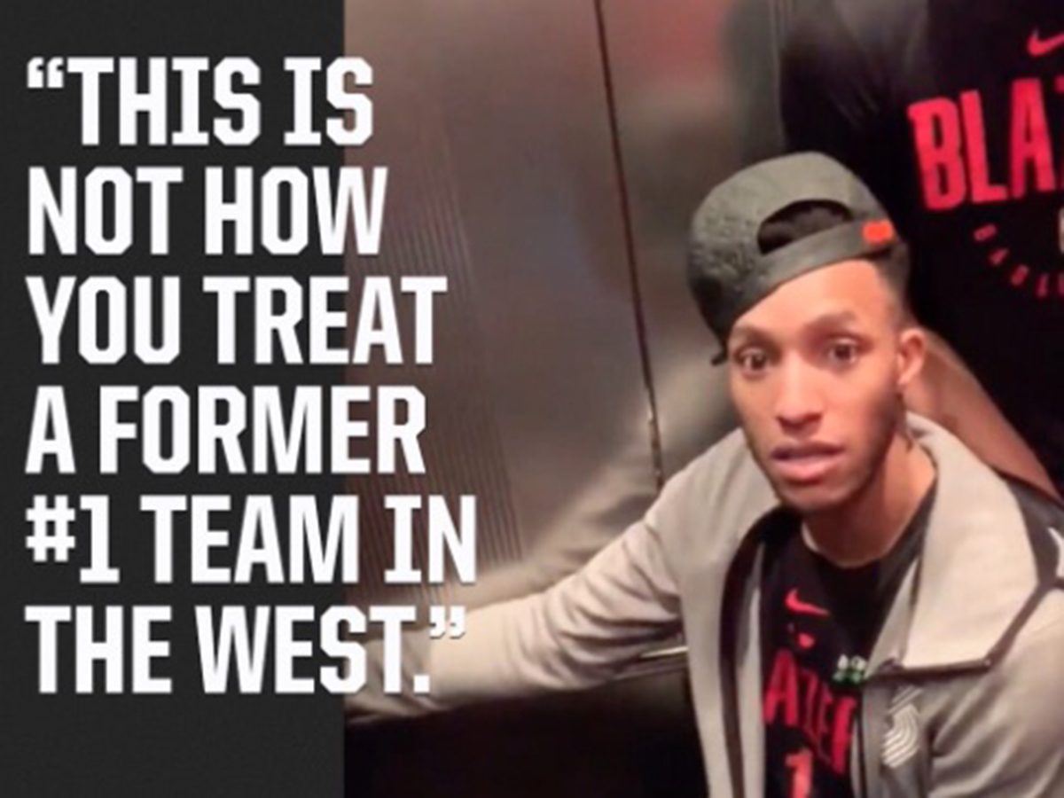 On Tuesday afternoon, a septet of Portland Trail Blazers were heading back up to the street level after practicing in the gym when the elevator stopped. Online hilarity ensued, starting with the trapped Trail Blazers themselves, who posted videos of their extended stay.