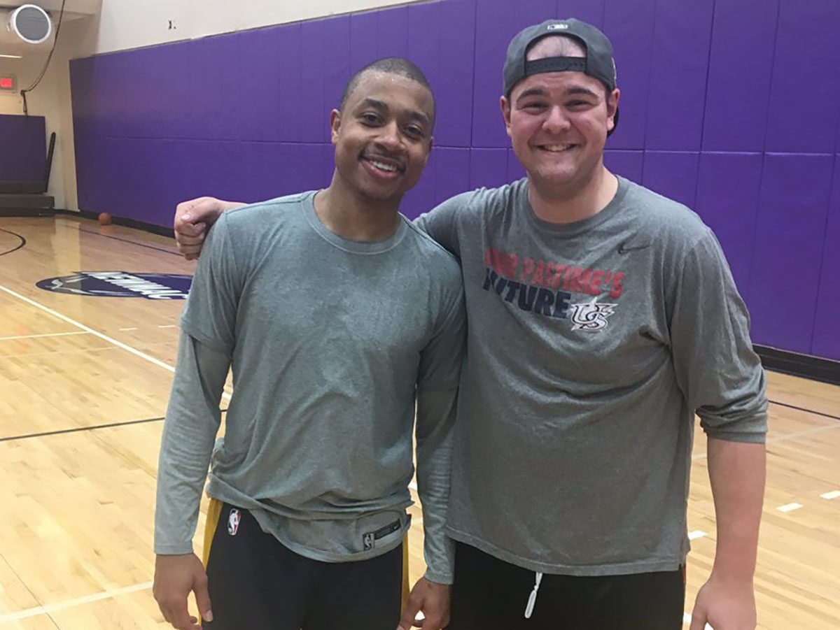 Former beloved Boston Celtic and current Denver Nugget Isaiah Thomas stuck around Emerson’s gym after practice to run an extra 5-on-5 game with Emerson students.