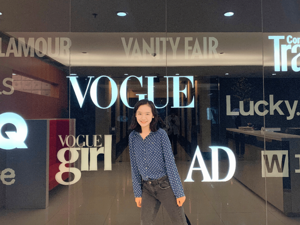 This summer, Fei is interning at Vogue China Fashion Group headquarters in her hometown of Beijing. Her duties in the editorial department include contacting different brands’ public relations departments to request clothes and samples; aiding fashion editors to crosscheck, fit, and prepare clothes and props for photo shoots; and assisting with the production process by recording credits and writing shot lists. Fei also visits stores to help editors to select clothes, writes articles for the VogueMini app, and translates articles from English to Chinese or from Chinese to English.