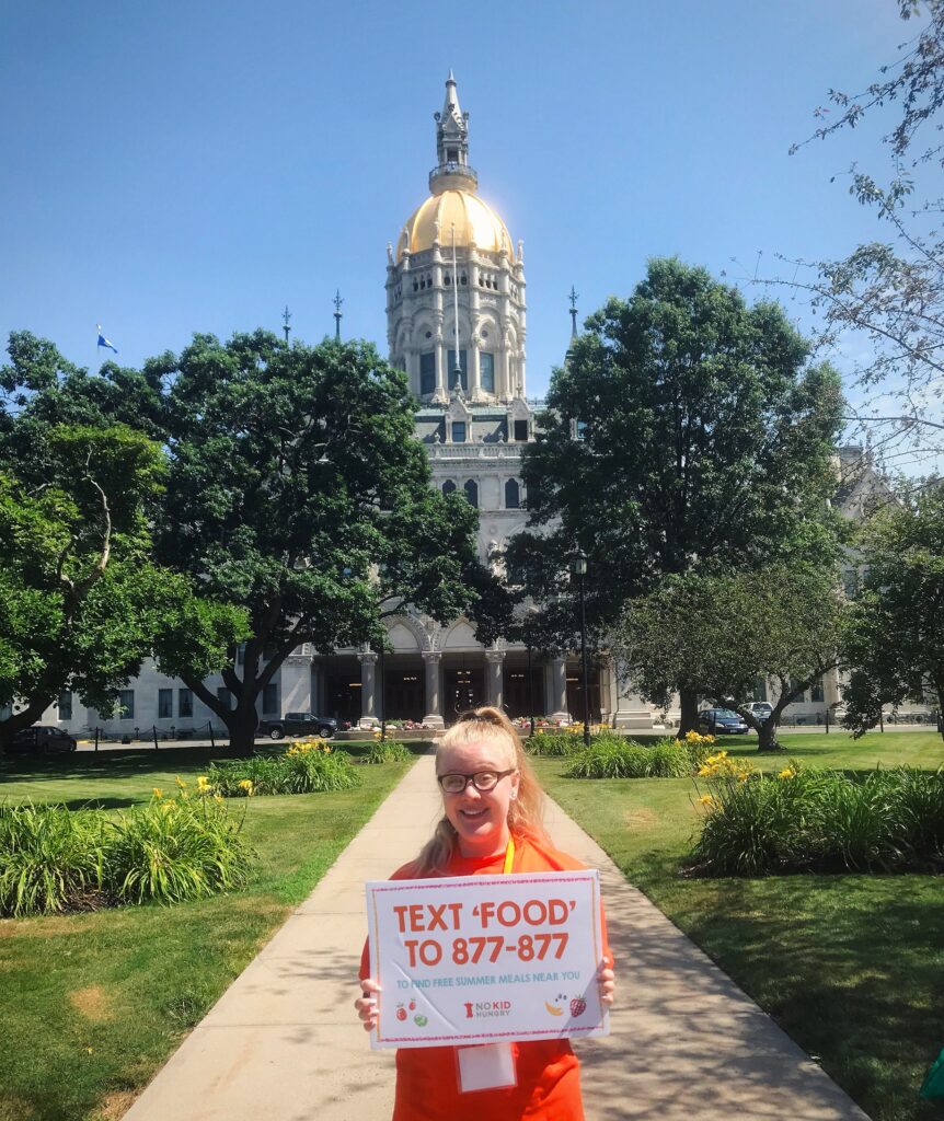 “Being so close to my hometown and right in my home state is very important to me. Being right in the thick of things, like grassroots movements typically are, is one of the most fulfilling parts of my job,” said the Communication Studies major and Nonprofit Communication minor, who worked as a Youth Ambassador intern for No Kid Hungry stationed in the center of Hartford, Connecticut, on the site of a social service organization called End Hunger Connecticut!
