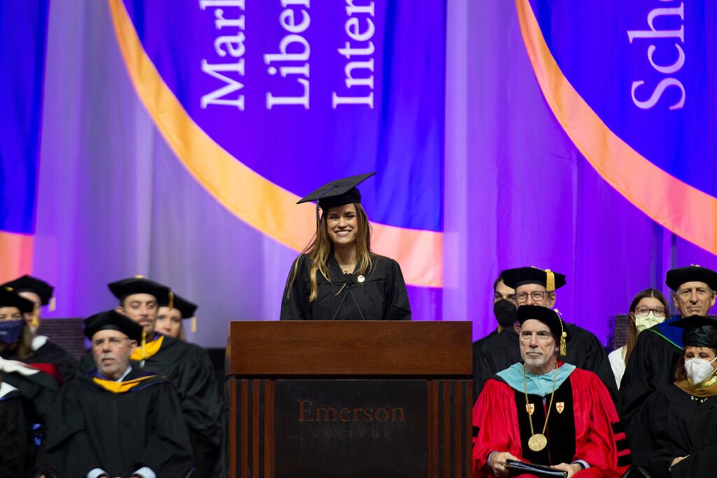 Valeria Ocando ’22, a Business of Creative Enterprises major, was the student speaker. She invited her classmates to “shape the culture by telling your story.”