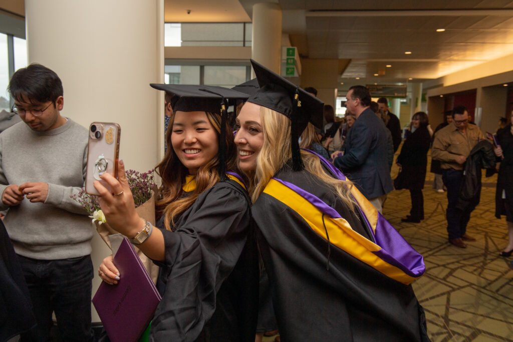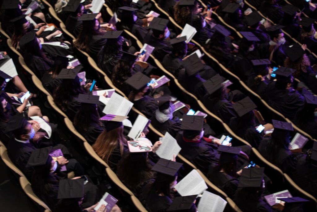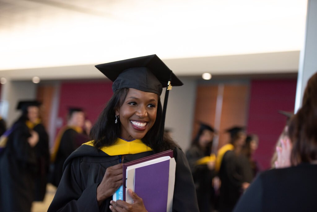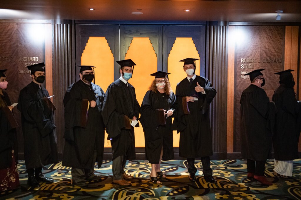 Before filing into the theater, students eagerly awaited behind the scenes, and spoke about why they pursued their degrees.