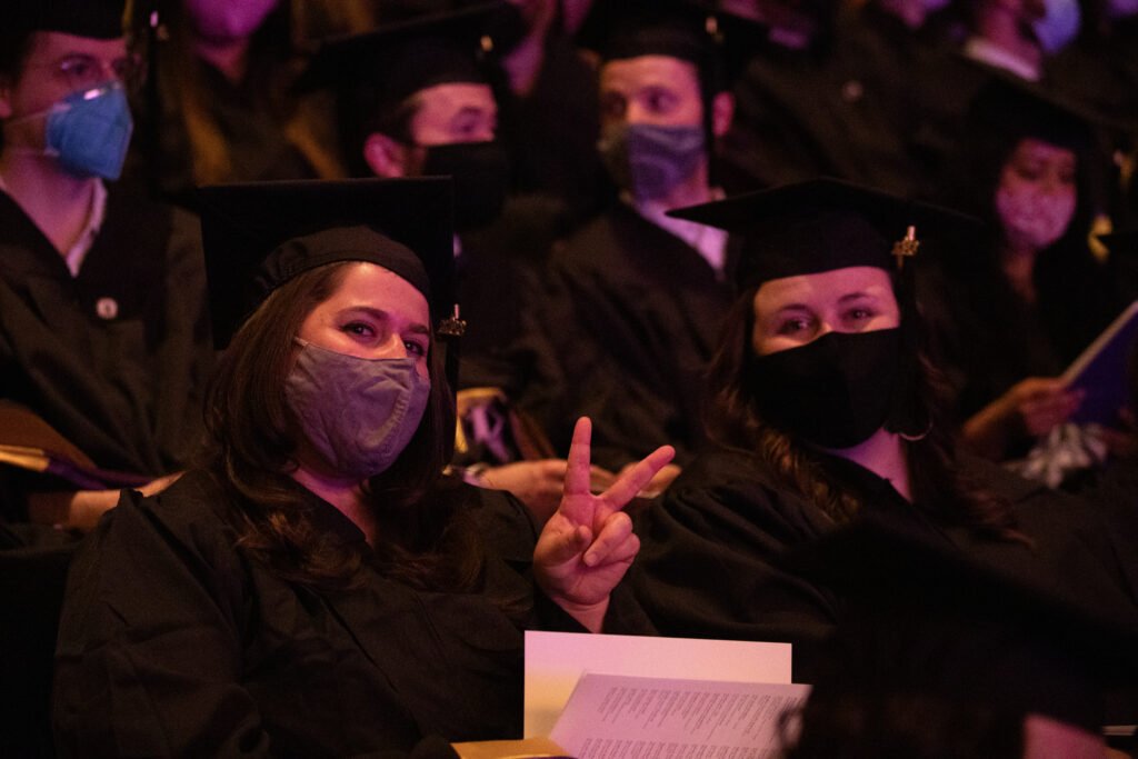 Student speakers Lashana Bell and Danielle Pappe spoke about resilience and the importance of friendship. Across the country, students faced and endured COVID-19, societal unrest, technical problems, taking classes in cars, moving, the death of loves ones, and happy occasions such as weddings and births.