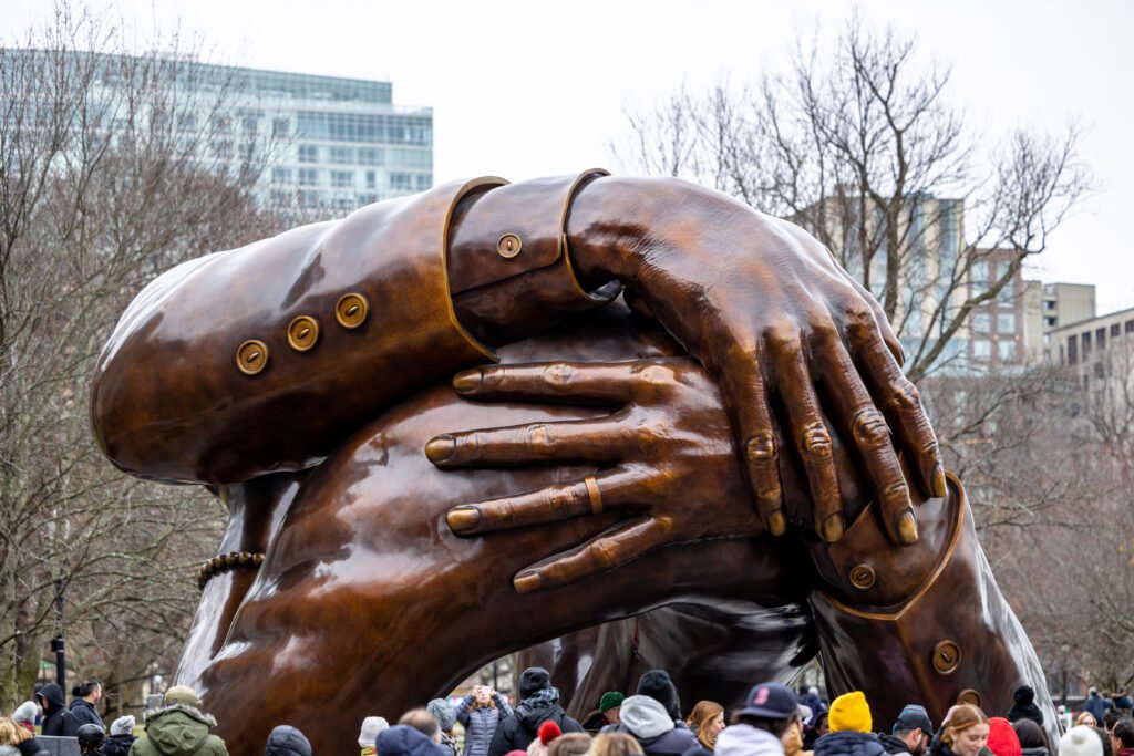 The unveiling on Boston Common of “The Embrace,” a public art piece depicting a hug shared between Dr. Martin Luther King Jr. and Coretta Scott King after he won the 1964 Nobel Peace Prize, was not solely the culmination of the project, but the beginning of important societal discussions.