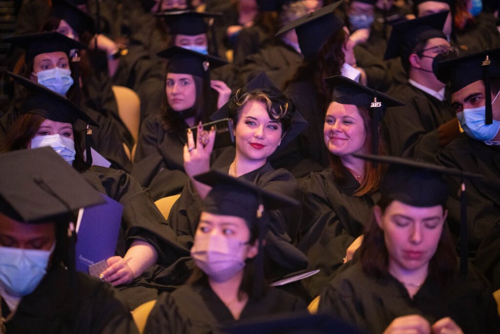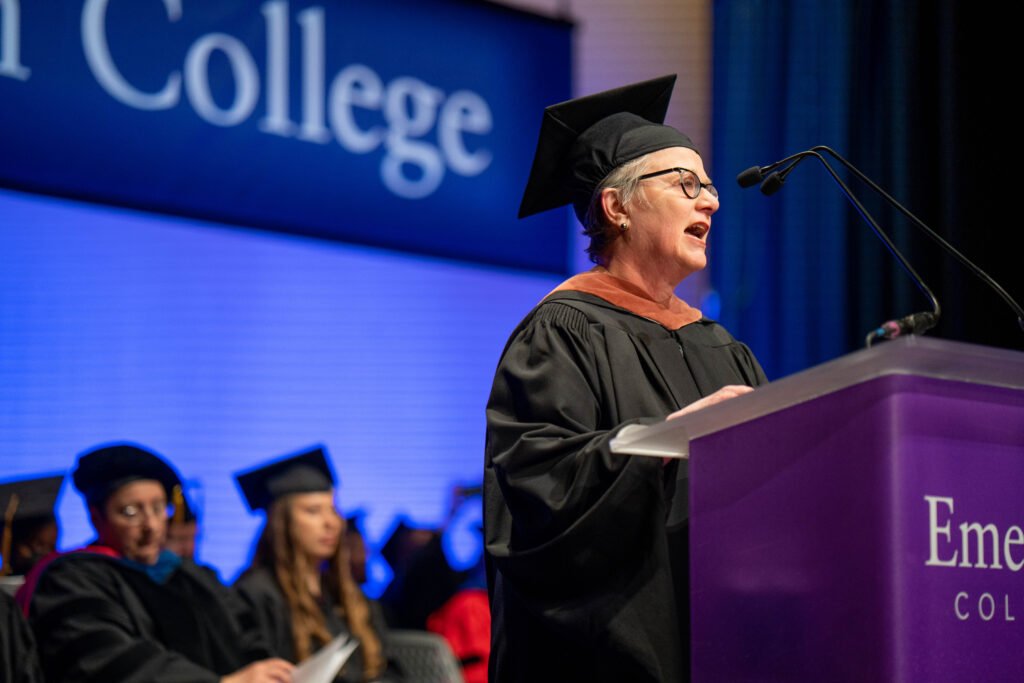 “I finally saw that spark that I was missing. And even though my path wasn’t straightforward… there was something unique about Emerson, and luckily, I ended up here,” said Dubovikova. “As I always say, we choose a bachelor’s degree with our mind, but we pick a masters with our heart. So here I am, standing in front of you now, ready to receive my master’s degree from the school where I finally feel like I belong.