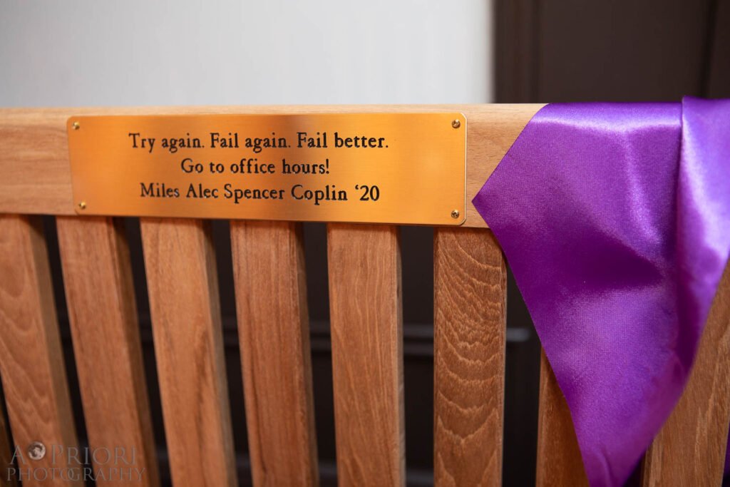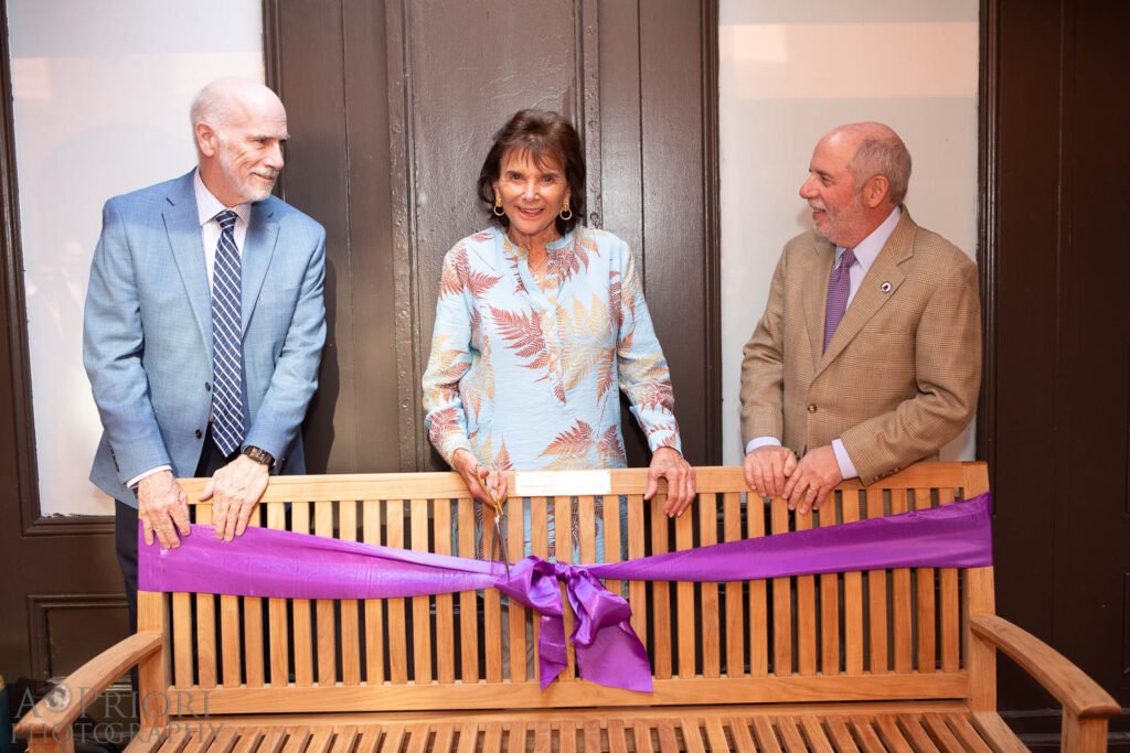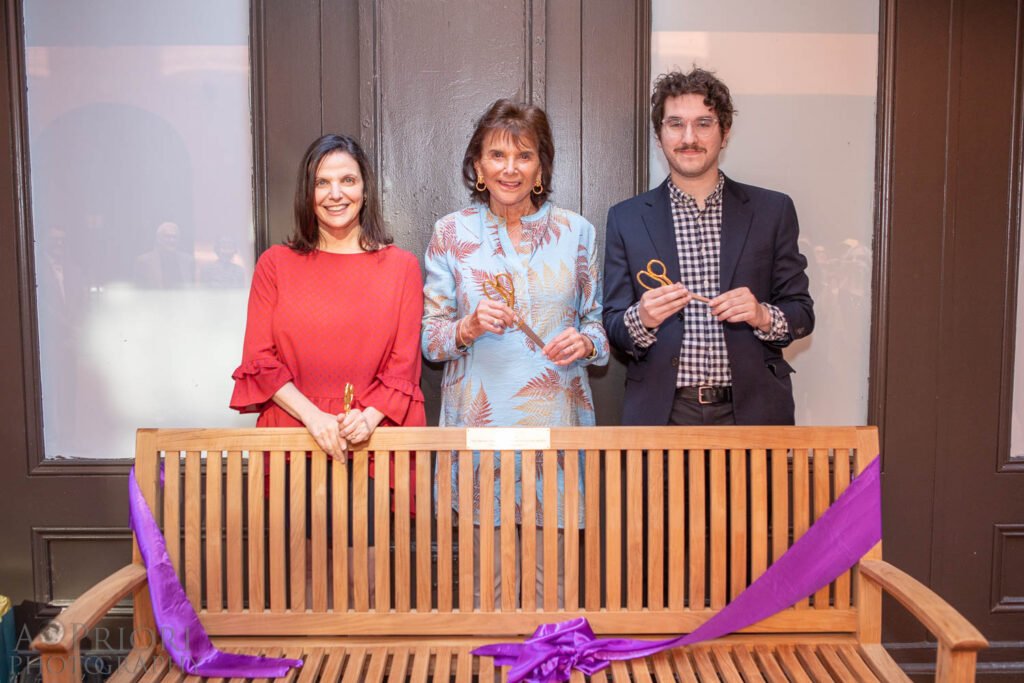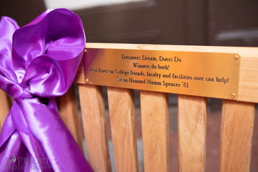 The trio of benches were dedicated with a ribbon cutting ceremony on Saturday, May 13, in honor of Emerson Trustee Susan Spencer ’61 who had previously made a generous donation to Emerson’s Diversity Scholarship. Along with Spencer, her daughter, Leslie Coplin ’87, and grandson, Miles Coplin ’20, are honored by the benches.