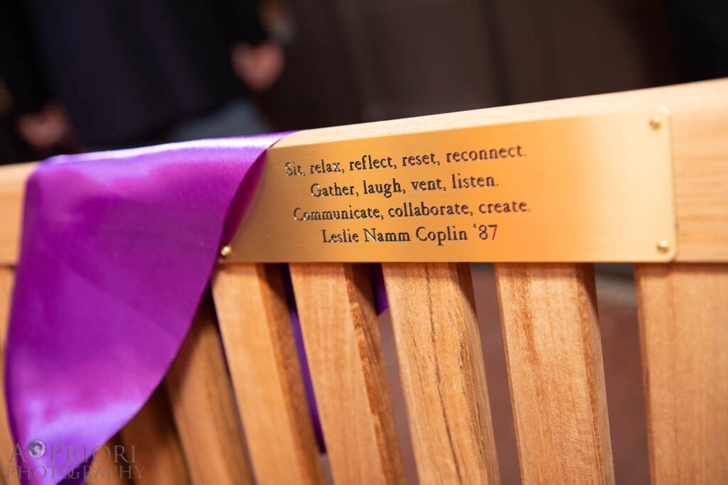 Each alum cut a ribbon for their respective bench, which has a plaque with a quote from each of them: