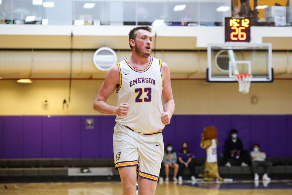 Jarred Houston ’22 is now using the experiences he gained patrolling the lane for the Emerson men’s basketball team at the professional level.