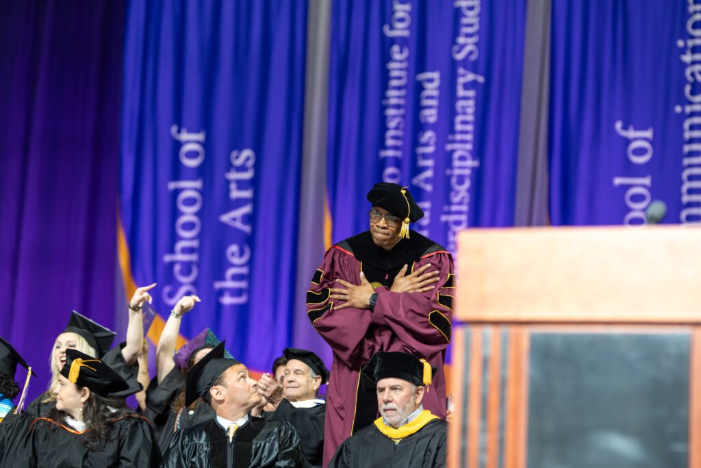 Ronee Penoi, Interim Executive Director of Office of the Arts, presented Barbato with an honorary Doctor of Humane Letters degree.