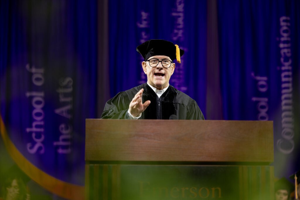 Emerson College President Dr. Jay Bernhardt kept his remarks brief.