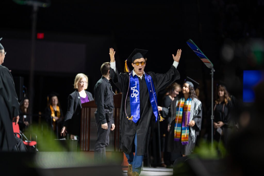 “Can I ask y’all to take a breath with me? Like a really deep, primal sigh. Like a Theatre & Performance BFA breath, really engage that diaphragm,” said senior class commencement speaker Joe Nalieth ‘24. “May we breathe in the collective weight of our experience these last four years: the communities we’ve built, the memories we’ve made, and the beautiful projects we brought to life.”