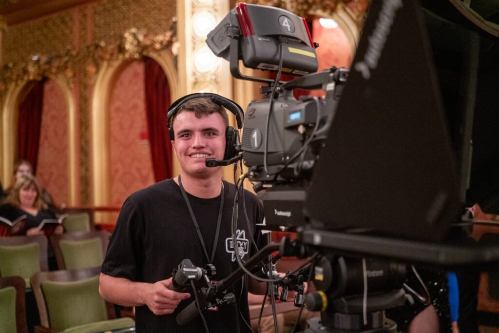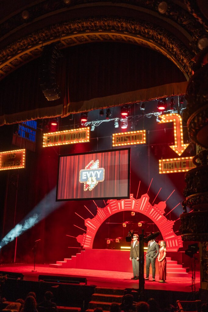 The 43rd Annual EVVY Awards kicked off with co-host Caroline Reese ’24 following the yellow brick road (of Beacon Hill) to the Cutler Majestic Theatre.