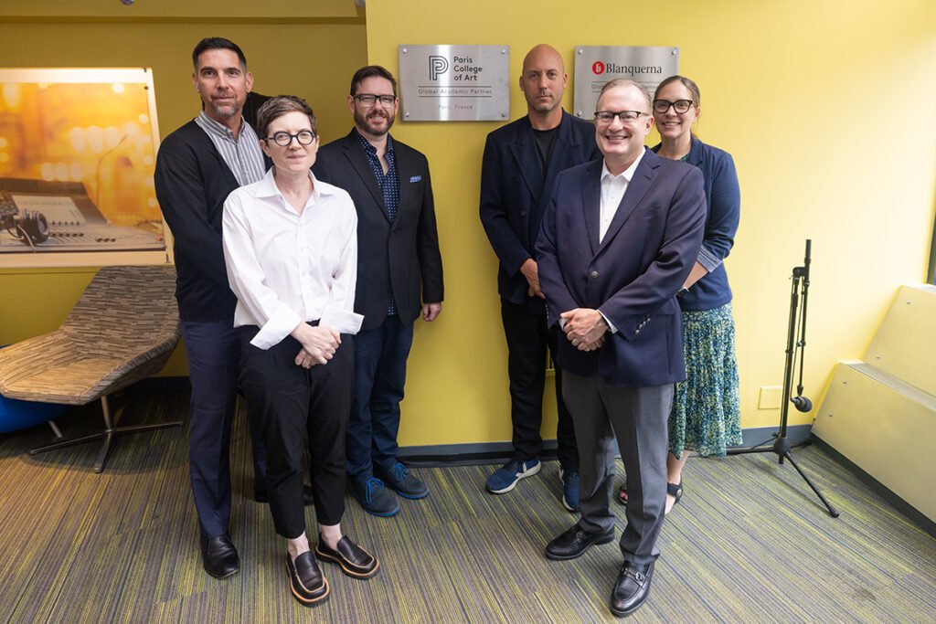 Among those attending the event were, from Emerson, President Jay Bernhardt, Provost Alexandra Socarides, School of the Arts Dean Kate Eichhorn, and Global BFA Co-Director Professor Dan Gaucher. Representing Paris College of Arts were Provost Michael Meere and Global BFA Co-Director and Film Department Chair Harald Hutter.
