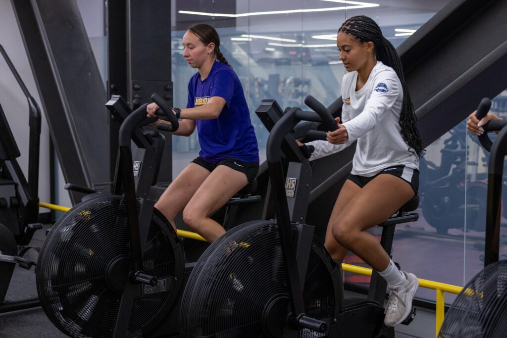 “It takes me 30 seconds to get here from the dorm,” said Sienna Parker ’28, who plays on the women’s soccer team. “It’s one of the nicest gyms I’ve seen. We did a team lift the other day and we all liked the updated racks. It has that new gym smell.”