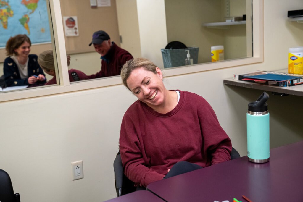 Sessions may be recorded for students and clinicians to review in their weekly one-on-ones to discuss clients’ treatment. For Kelly, seeing footage of herself from 2019 shows her how far she’s come. Back then, her mother had to drive her to the Robbins Center; now, Kelly drives herself.