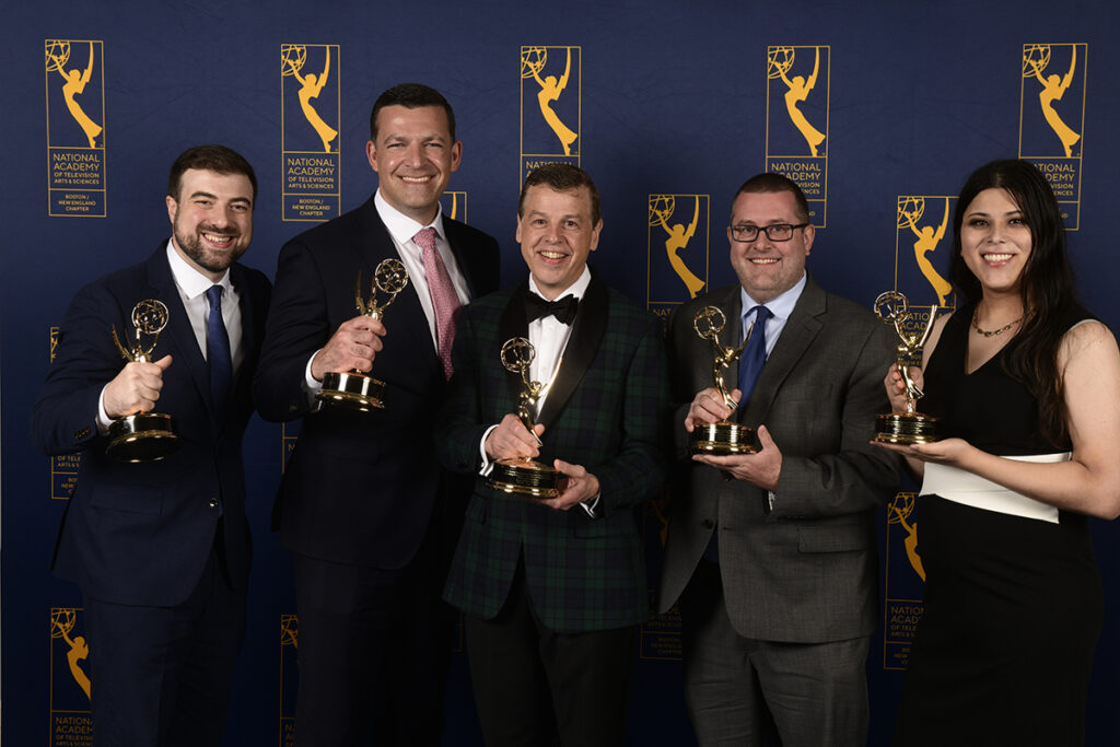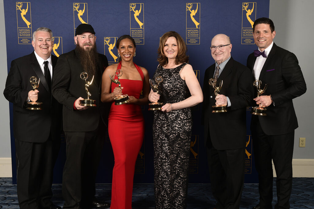 Two dozen Emerson alums took home Boston/New England Emmy Awards Saturday, June 7, for their work on local news broadcasts and promotional spots, with many receiving multiple awards throughout the night.