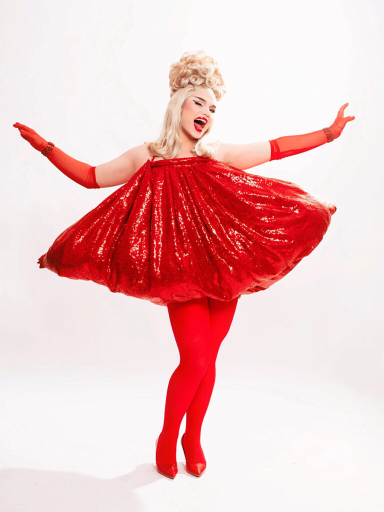 The evening wraps up with Emerson alum Patty Bourrée (MA ’20, MFA ’21), the Definitive Boston-based Singing Blonde Comedy Queen, and her friends Doriann Blonch and Lucy Diamonds, for a night of family-friendly drag! Patty is a drag and cabaret artist known for her big voice, vintage style, and bad attitude.