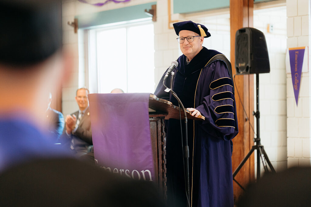 “Too often, people in my position have their narrative told by someone else,” Bin said. “I don’t know if you understand the pain of having someone label you something you’re not. Though today, I accept and own this new label as an Emerson graduate.”