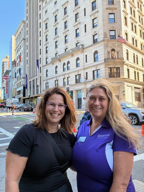 Leslie, parent of Kayson Lipson ’29, cheerily introduced herself to Duffy after recognizing her outside of Tatte Bakery on the corner of Boylston and Tremont streets. Duffy was the facilitator for Kayson’s summer Emersion Foundations of Success first-year seminar, during which Duffy made comments on Kayson’s film assignment, and Kayson sent a screenshot of the comments to Leslie.
