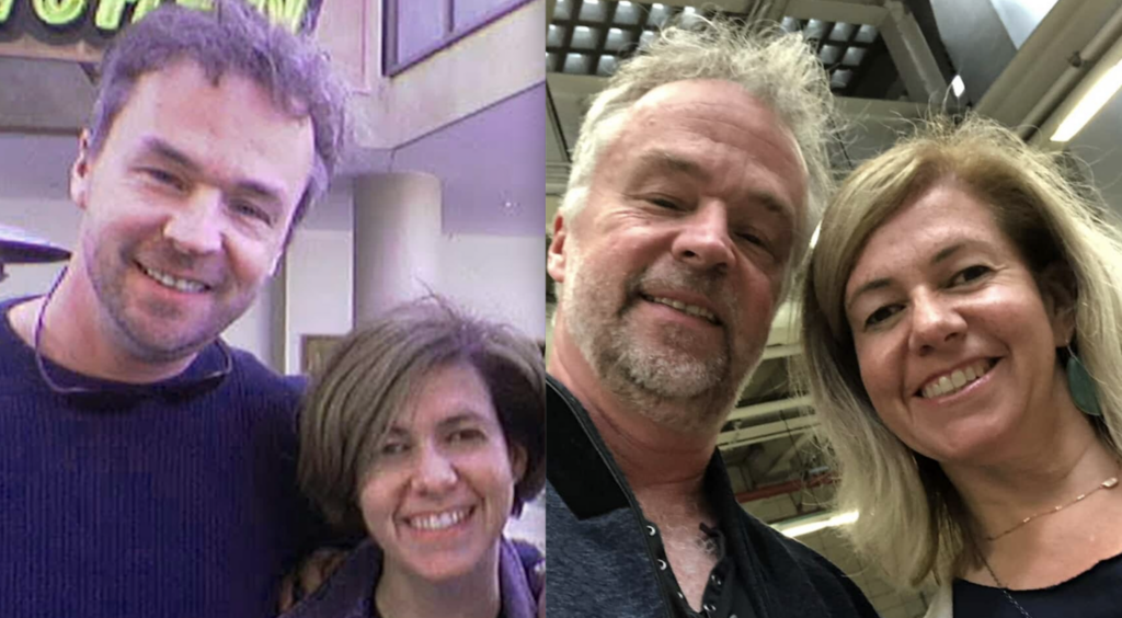 We met at an RDO Frat party on January 20, 1991. We’ve been married for almost 30 years. We got married at Windows on the World NYC on the 107th floor of the World Trade Center. We are having an incredible adventure with two children, two pairs of rescue kittens and a sheepadoodle. If we are searching for our secret—it might be that she is his waves, and he is her rock.