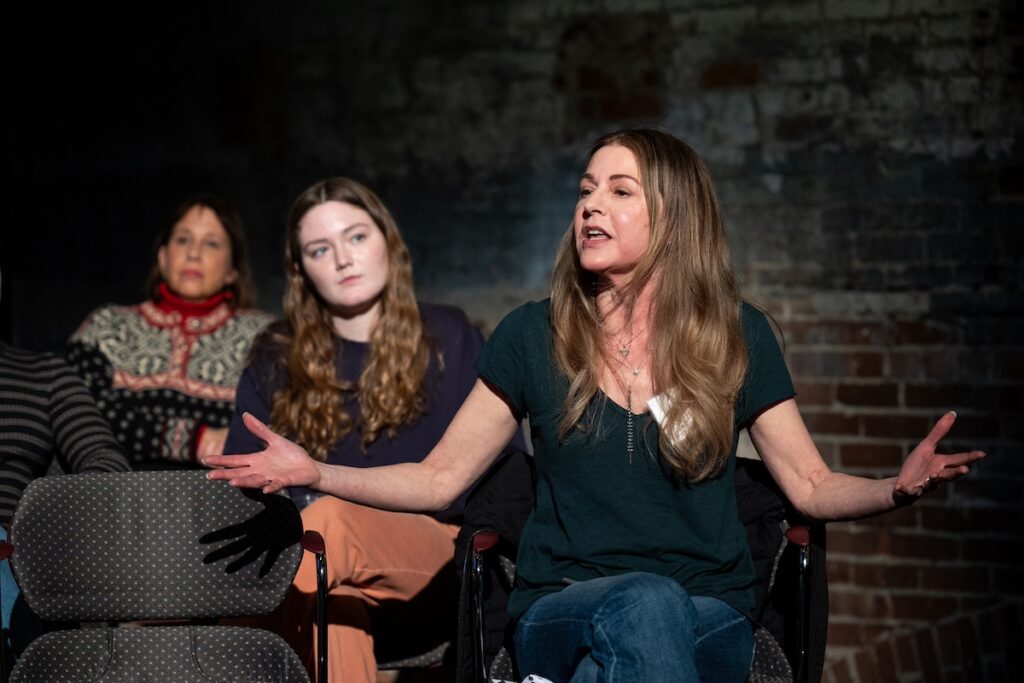 The table reading brought together collaborators from across Emerson. Caiazza had developed her script prior to the workshop in a class with School of Film, Television and Media Arts Assistant Professor Owen Egerton. Performing Arts Associate Professor and Interim Chair and Head of Acting Lindsay Beamish recruited actors, and the writers were part of a comedy workshop course led by Professor and Founding Director of the Center for Comedic Arts Martie Cook ’82.