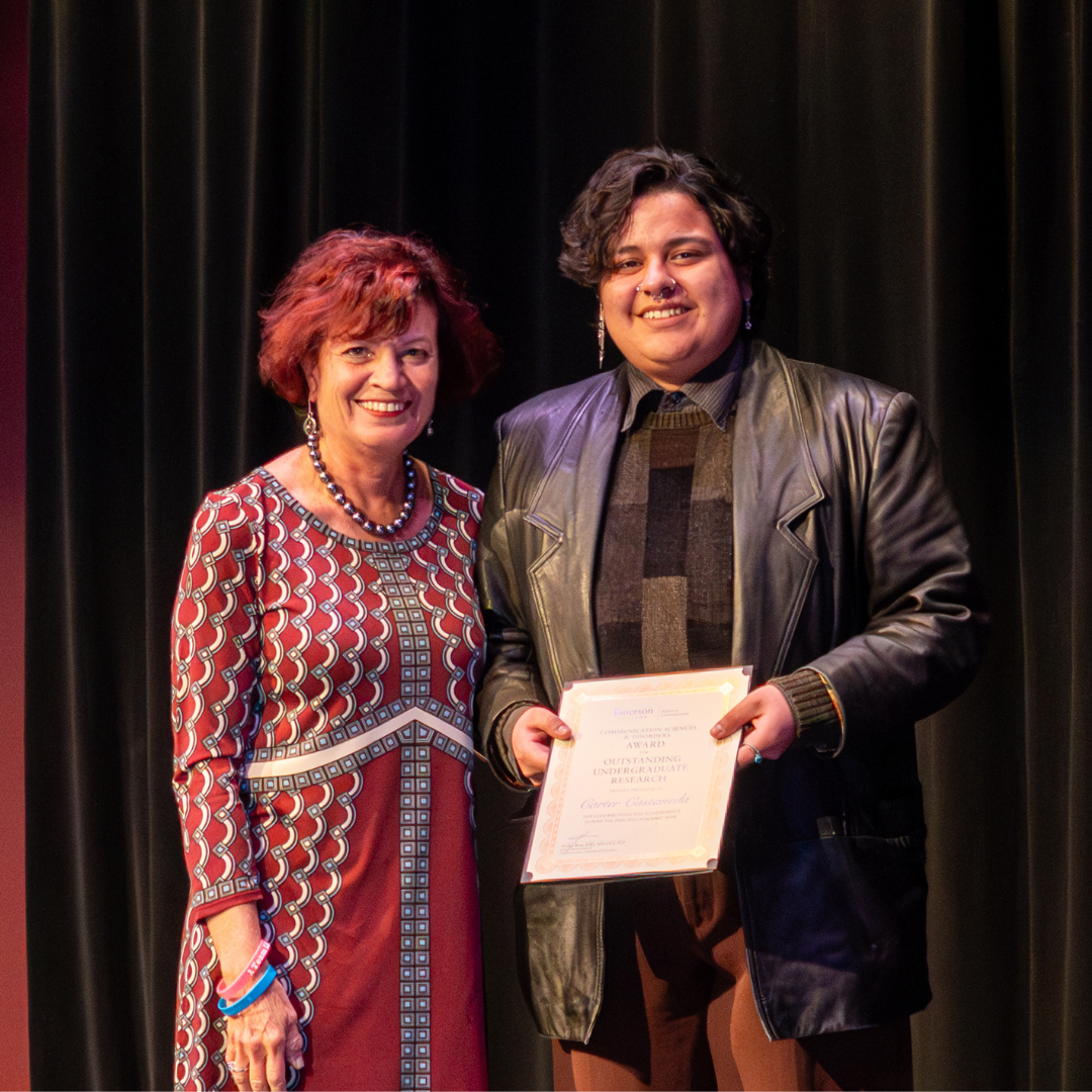 Castaneda’s impact lingers long after the class ends. Working alongside Professor Lisa Wisman Weil, Castaneda contributed to research on access to early intervention, examining disparities across states and building a web resource that stands as one of the project’s most significant deliverables. Professor Cheryl Reed, who has taught across many institutions, named Castaneda one of the top students she has ever encountered, noting his deep commitment to making theatre and media accessible to people with disabilities. In the classroom, Castaneda is a consistent force who challenges peers to think critically, sharing perspectives that shift the conversation, and showing up with the kind of intention that makes everyone around him better. The faculty who taught him will be the first to say they can’t wait to watch what he does next.